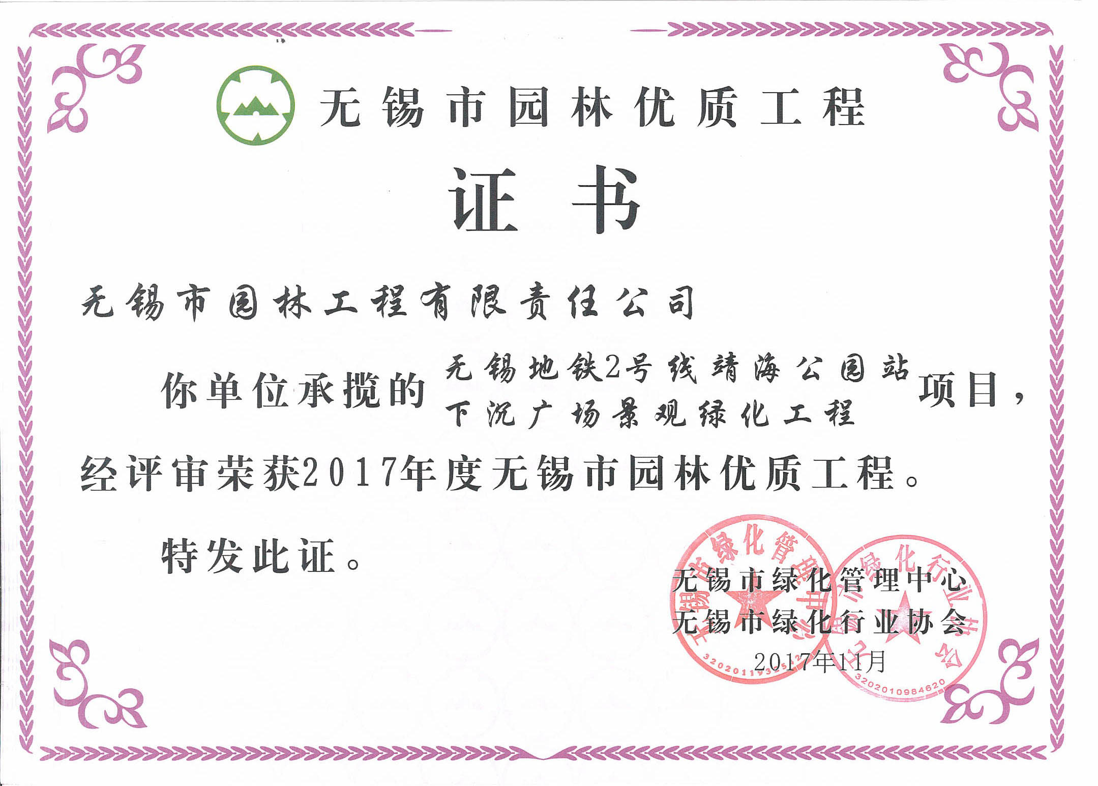 2018揚(yáng)子杯——無(wú)錫地鐵2號(hào)線靖海公園站下沉廣場(chǎng)景觀綠化工程